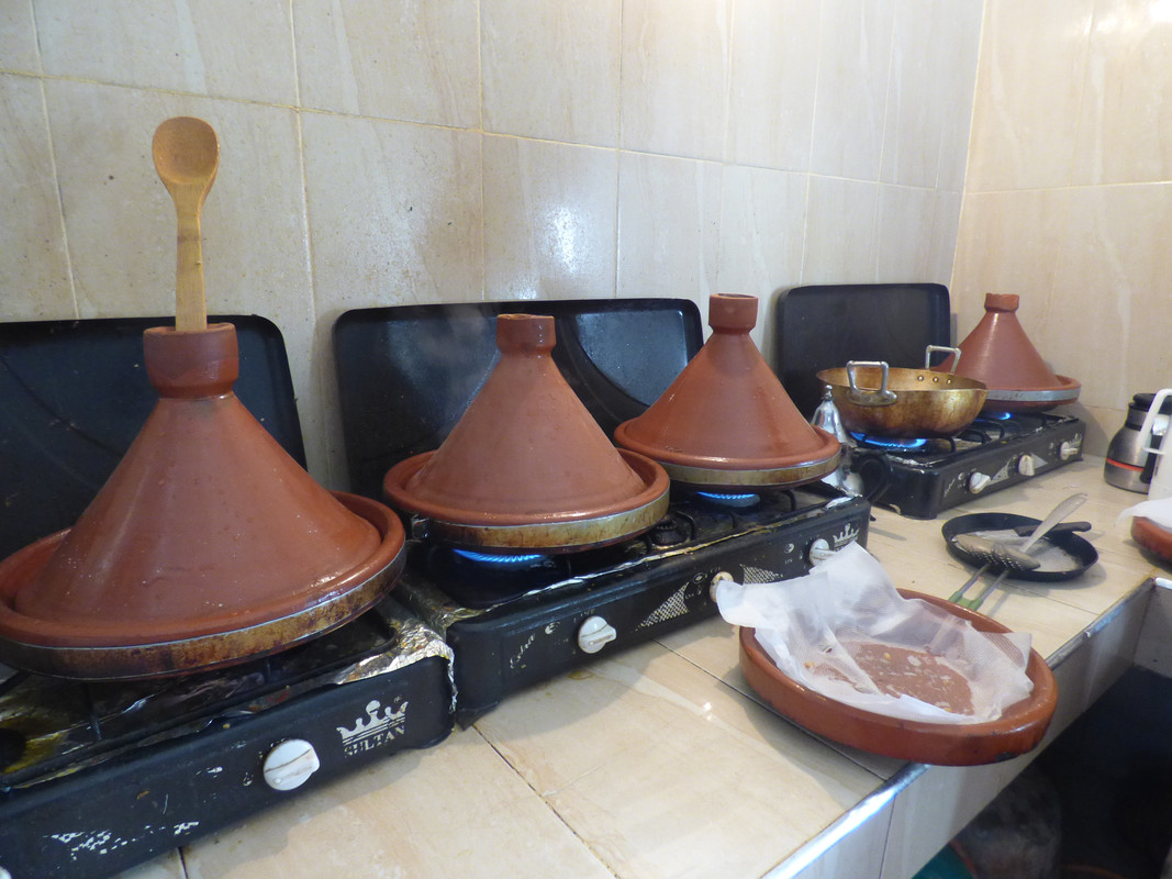 The main form of cooking utensil, the tajine. These clay pots produce daily meals of sauteed vegetables, olives, and scrambled eggs. The Berber omelet.