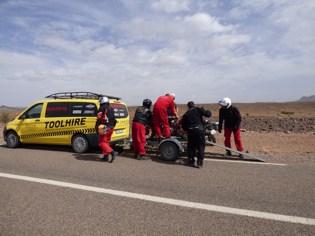 We had one bike which went home in a broken condition. The Guzzi Falcone is a fairly simple machine. We carry enough spare parts to accomplish almost any overnight repair. We very seldom have one completelyl out of service. This moto blew a head gasket. It happens occasionally. We did three on the California tour in 2014. Shouldn't be much more than an hour task to replace. Unfortunately, someone had used red LocTite to secure the retaining screws of the timing gear cover. Repair project came to a screeching halt. This one won't come apart without some serious shop manipulation involving torches, drills, etc. Sadly, sent home on the trailer of shame.