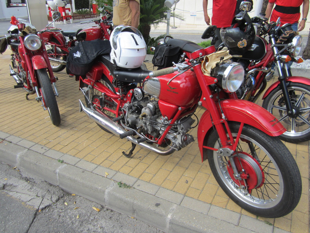 Our Club, Moto Guzzi Classics, is centered in the Veneto region of northeastern Italy. One of our founding Club members, GianLorenzo Bono, had a family connection in Marbella on the Mediterranean coast of Spain. It was he who had developed the idea and then the plan to cross the Strait of Gibraltar and tour Morocco in North Africa. Alas, as fate dictated, Bono died suddenly earlier this year. As a Club, we decided to continue with the plan and complete the African adventure which Bono had envisioned. I was honored by his family with an invitation to utilize Bono's own, favorite Moto Guzzi Falcone so a part of his spirit would complete the tour. This is the precious Falcone of Bono in front of our Marbella hotel. Notice how clean, shiny, pristine it is. Won't last long like this.